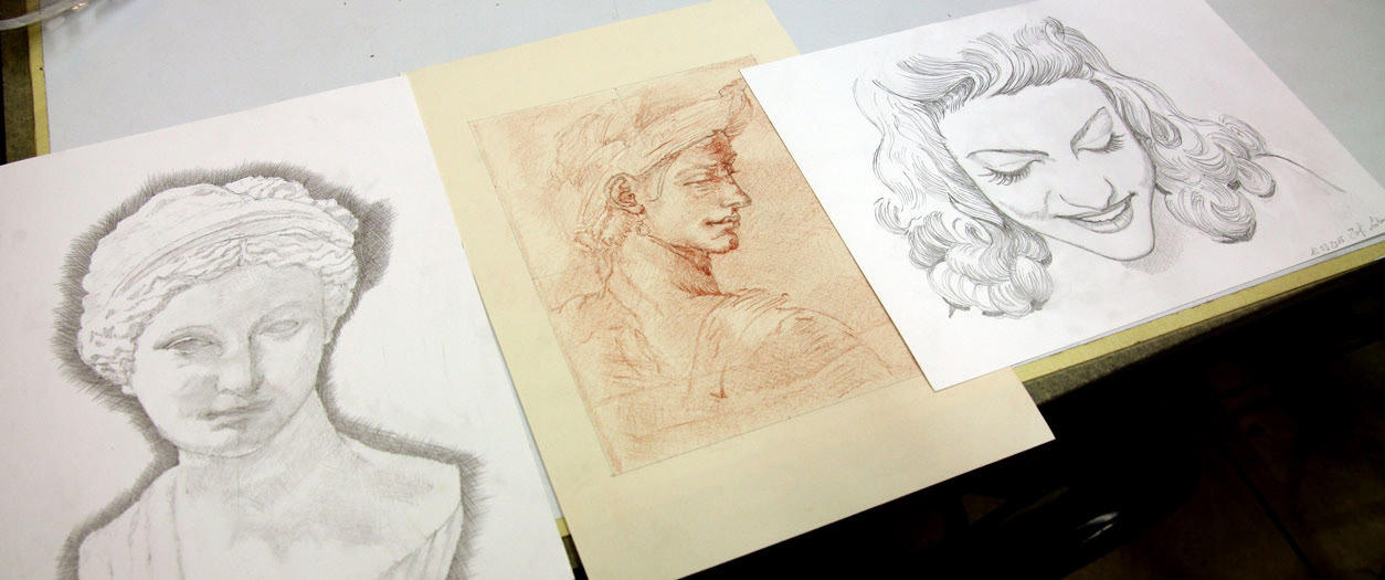 Eesecizi e lavori realizzati dagli allievi del corso di disegno avanzato viso